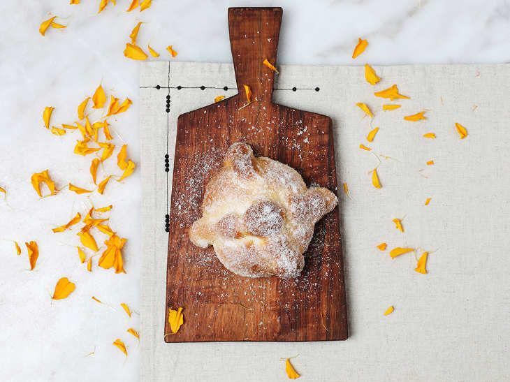 Recipe for authentic Pan de Muerto from Chef Elizabeth Pérez Camarena owner of the Casa Marietta bakery, located in the state of Guanajuato, Mexico. It's a sweet orange-infused sweet bread served around Day of the Dead.