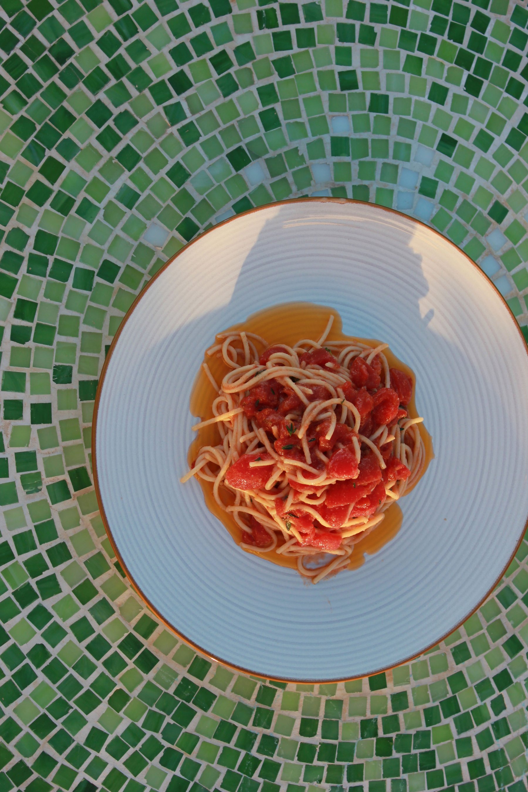 Pan Fried Spaghetti in Tomatoes and Thyme