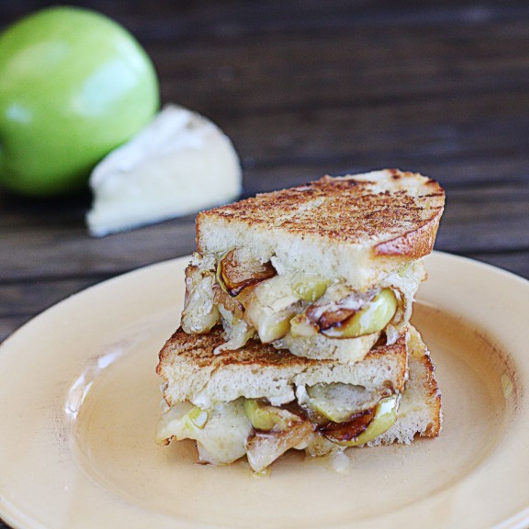 A gooey and delicious grilled cheese with tart apples and melted brie cheese. A delightful snack or perfect for brunch.