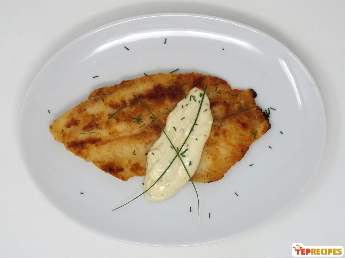 Tilapia fillets floured and pan seared with a Dijon mustard and mayonnaise sauce.