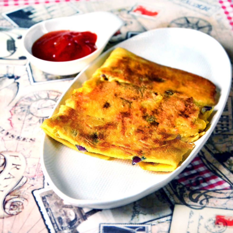 I was sitting around down nothing, reading an already read short story by Edgar Allan Poe, when the idea to invent a weekend brunch recipe came upon me. Thus was born the dish POE, rather an acronym of Pancake Omelet Envelope.
