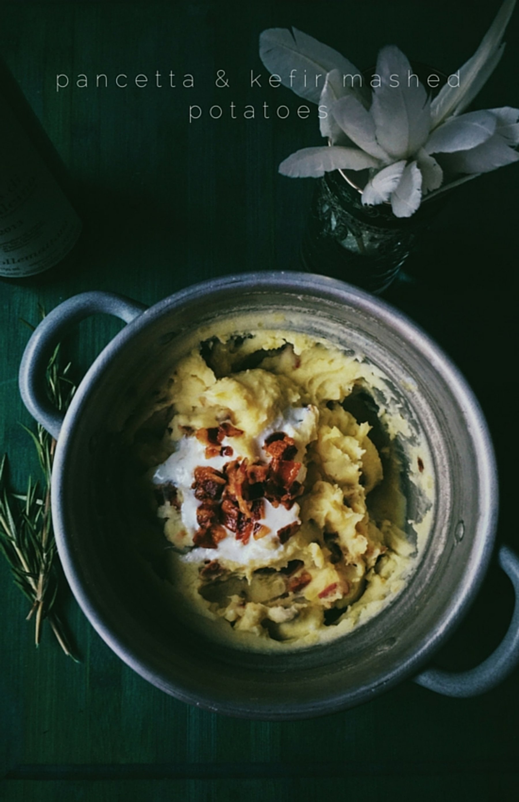 Mashed potatoes with crunchy Italian pancetta and healthy creamy kefir, don’t bother the contrast, it is delicious!