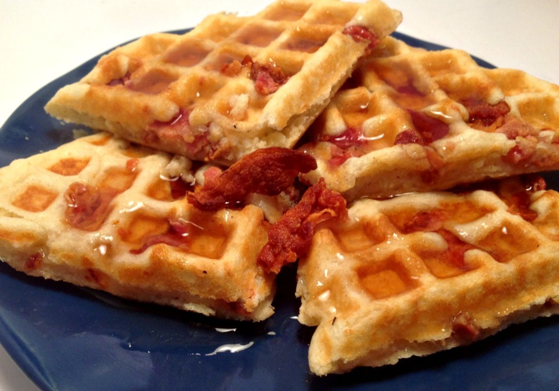 Salty sweet pancetta waffles for breakfast, brunch or dinner.