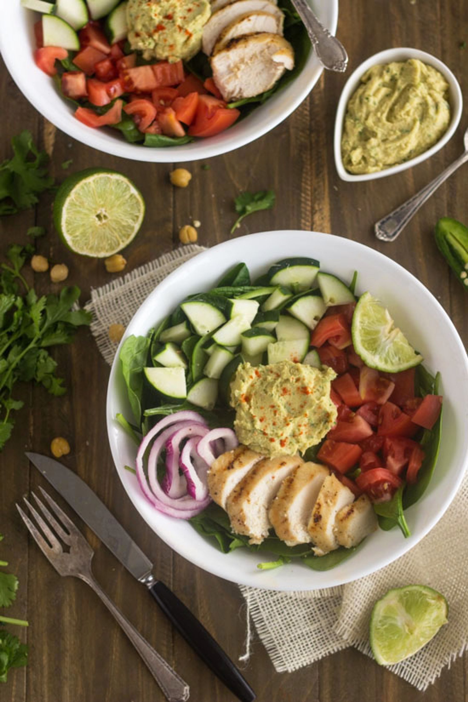 A quick and easy copy-cat recipe of the Panera Hummus Chicken Power salad. It makes a perfect, healthy weeknight dinner!