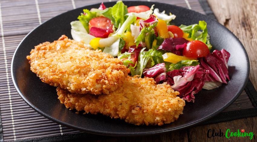 Crispy, panko breaded chicken breast recipe is a healthier spin on your traditional deep fried breaded chicken breast because it is baked in the oven instead. The key to the best crispy crust is Panko breadcrumbs or Japanese-style breadcrumbs.