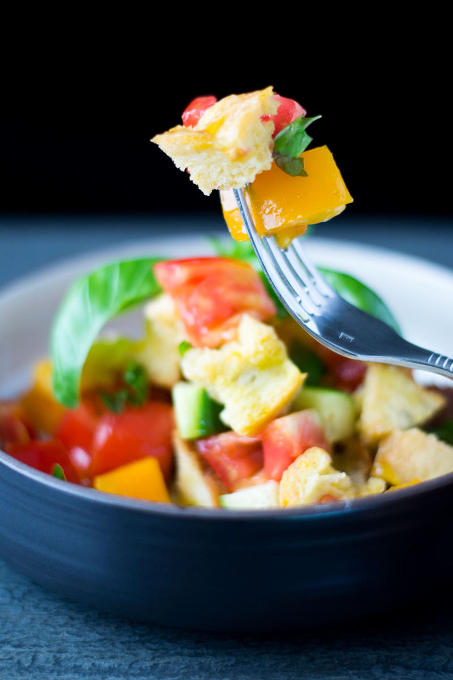 Chunky tomatoes, big basil leaves, torn bread doused in olive oil and vinegar