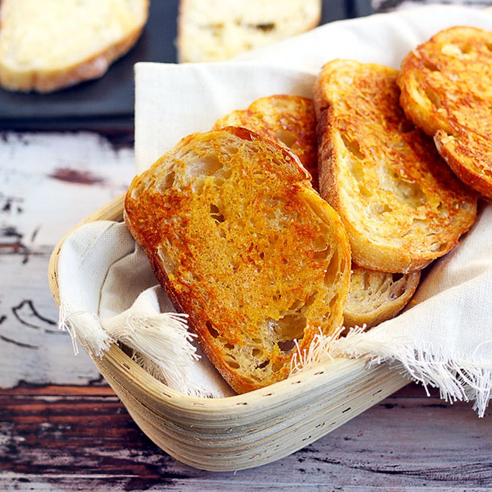 12 slices crusty bread, about 1.5cm thick (stale is fine)
