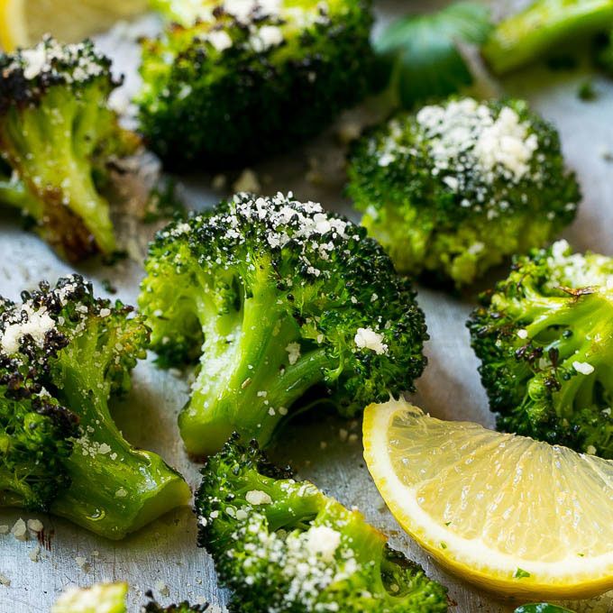 This parmesan roasted broccoli is seasoned with olive oil, parmesan and herbs. Put it in a hot oven and cook until tender and browned for the best broccoli you'll ever have!