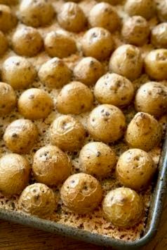 Roasted potatoes with a crispy cheese bottom.