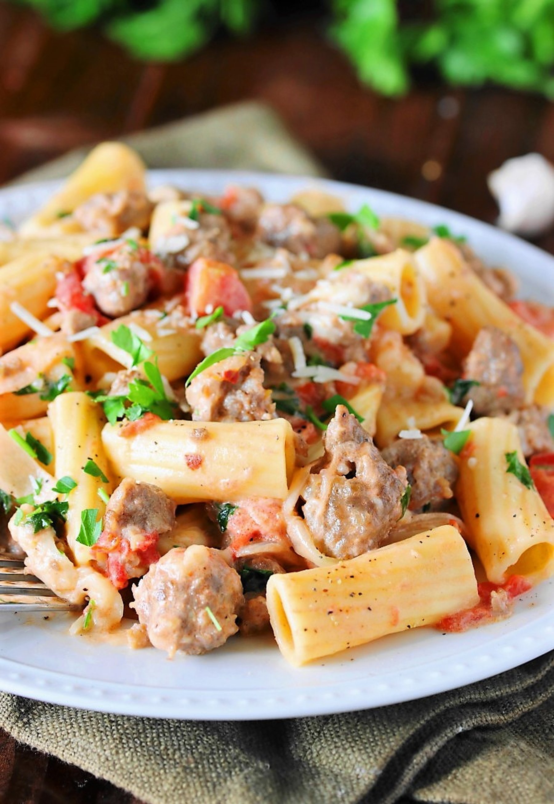 Pair this Pasta in Creamy Sausage Sauce with some warm crusty bread and a simple salad for a quick and easy complete meal. Then get ready to dig on in to a plate of pasta deliciousness!