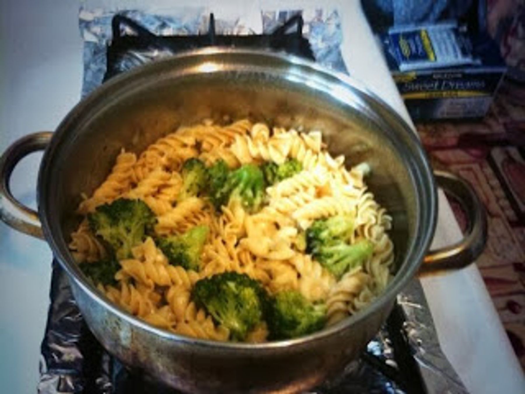 2. In a skillet with olive oil, in medium high, add sliced garlic. Cook till brown. Add hot pepper flakes and fresh broccoli. Stir in olive...