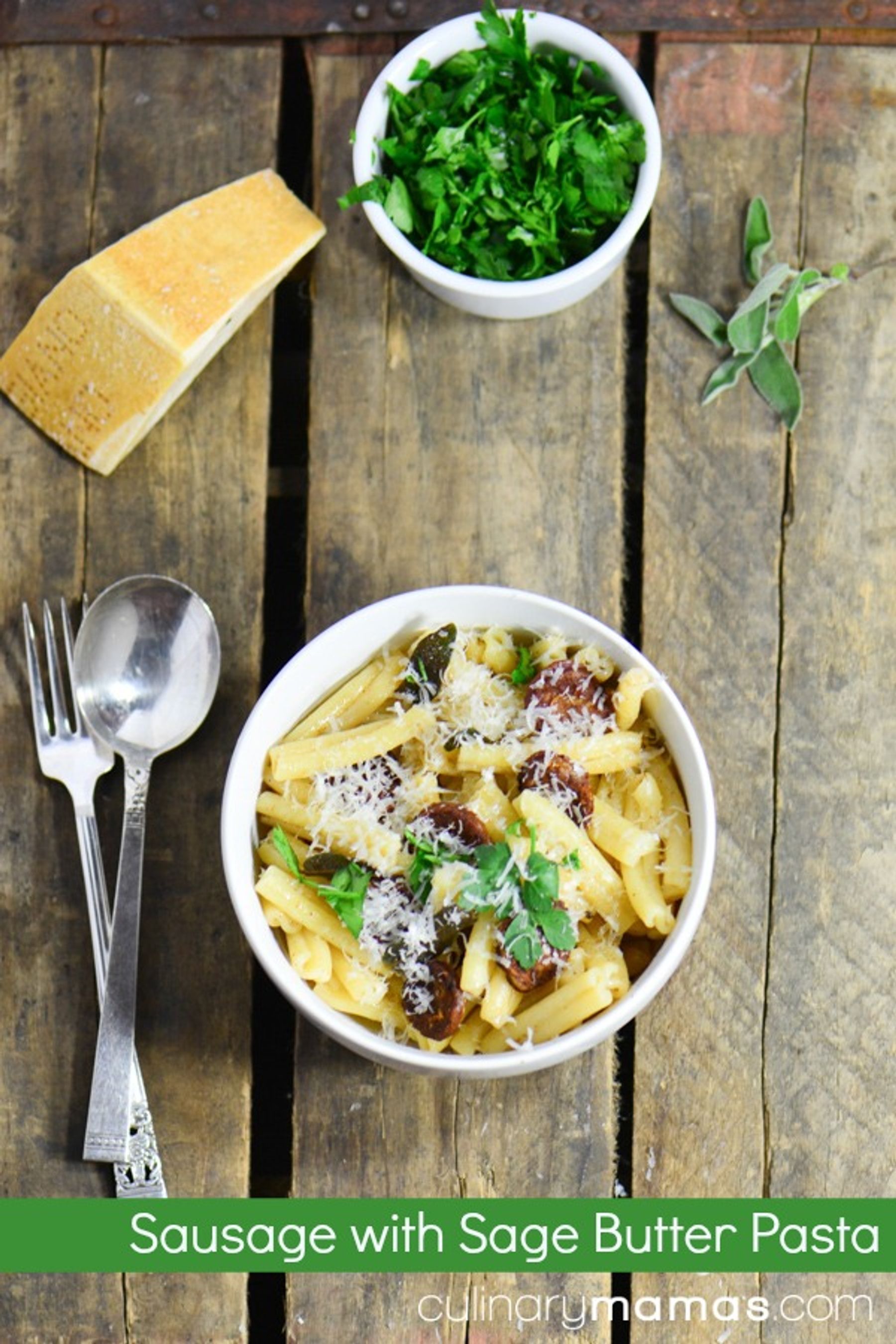 Pasta with browned butter, toasted sage and sausage. Easy to prep and completely impressive.