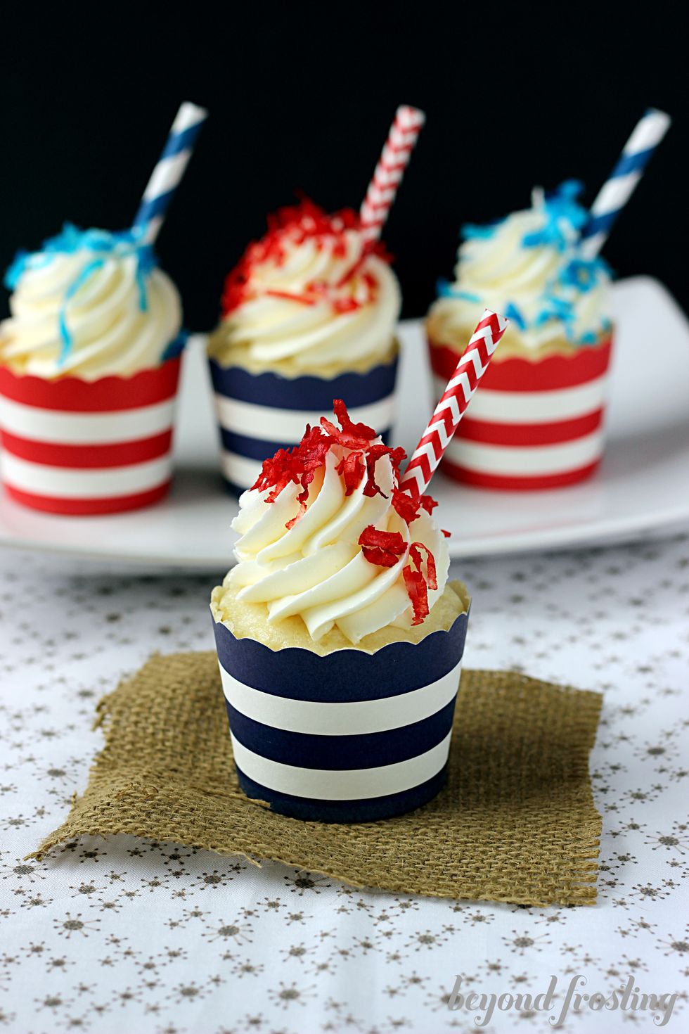 These Pina Colada Cupcakes are perfect for your July 4th parties! Filled with Rum, Coconut and fresh pineapple.