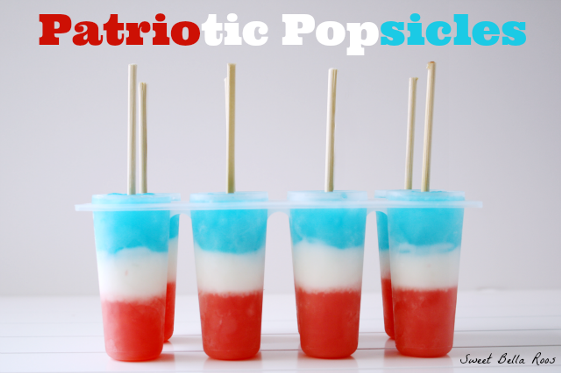 These patriotic popsicles are so easy to make, but will look festive at any Fourth of July celebration! Just mix your favorite flavors of red and blue Jell-O, add a yogurt center, freeze, and enjoy! Perfect patriotic treat for a hot summer night watching the fireworks!
