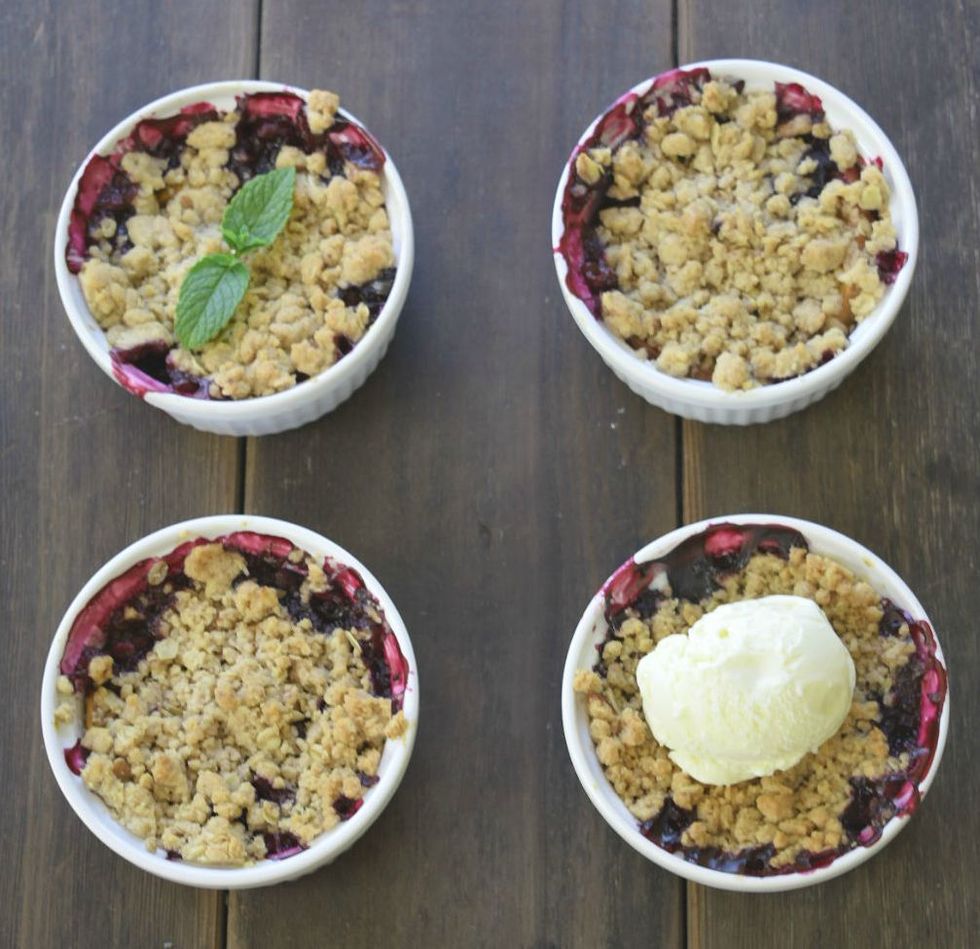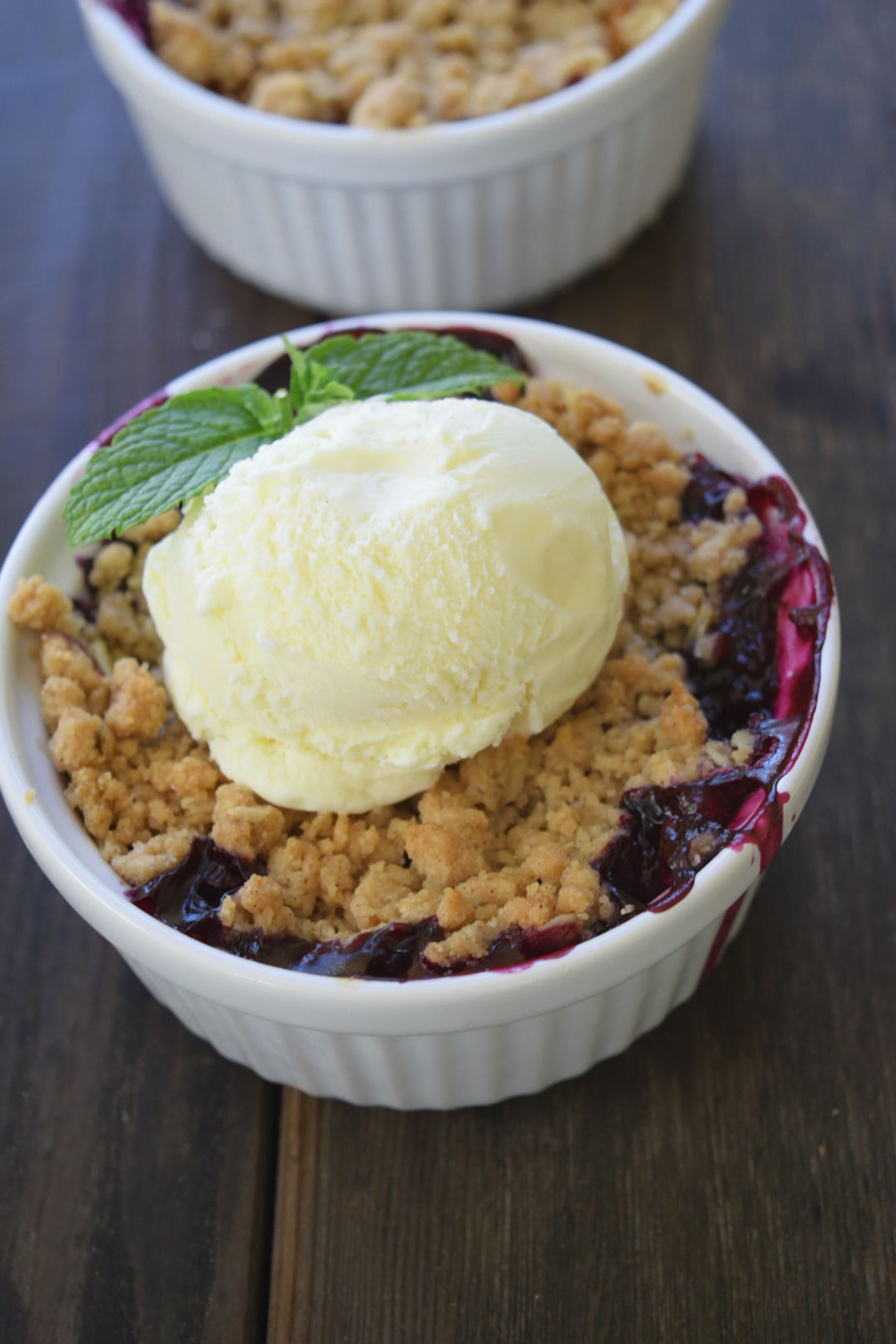 Fresh, juicy peaches and bright blueberries come together in this peach blueberry oatmeal crisp with a buttery, sweet oatmeal topping! Serve with a scoop of vanilla ice cream for one award winning dessert!