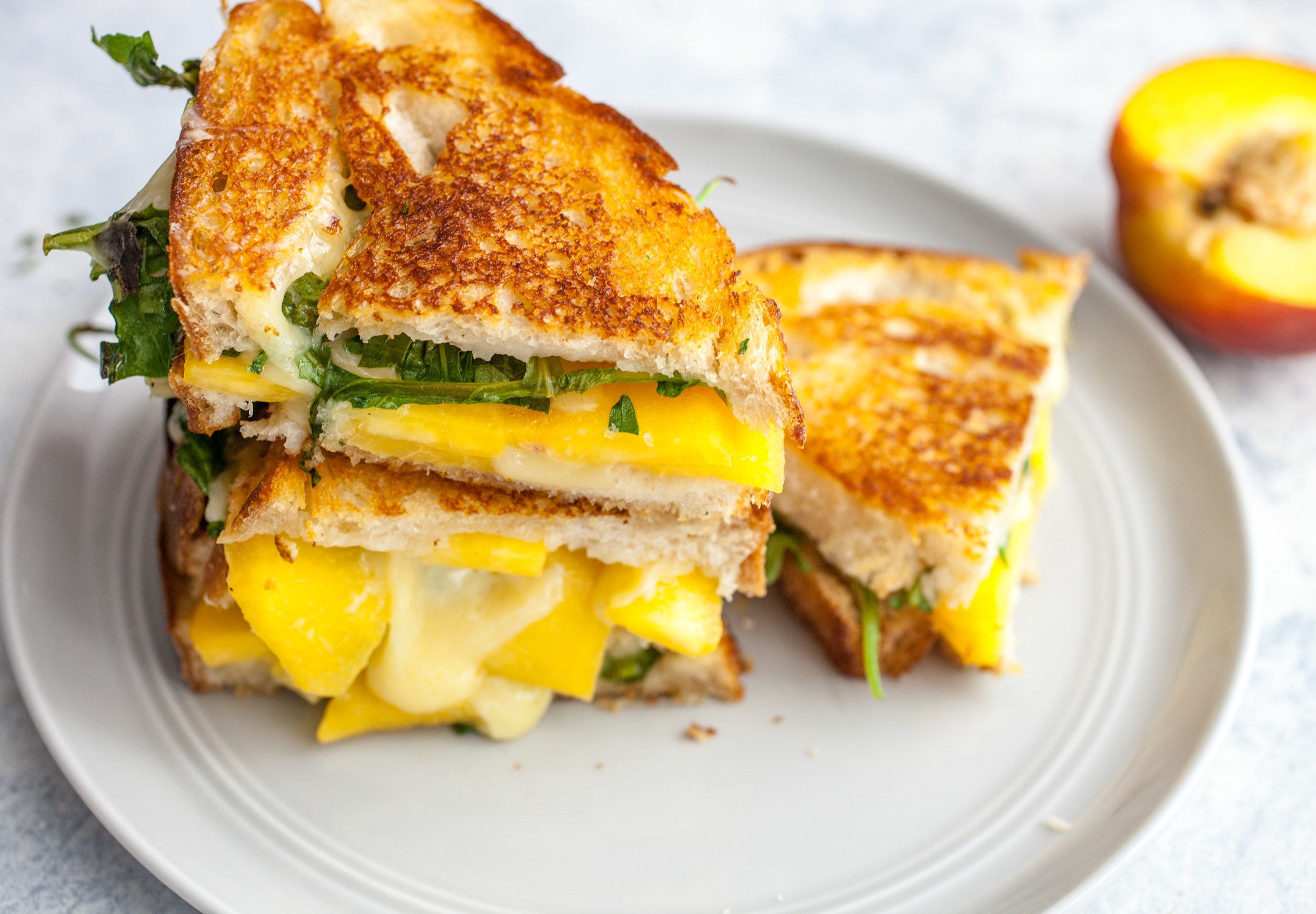 Grilled cheese using summer peaches, Gruyere cheese, and fresh arugula. A fantastic summer sandwich!