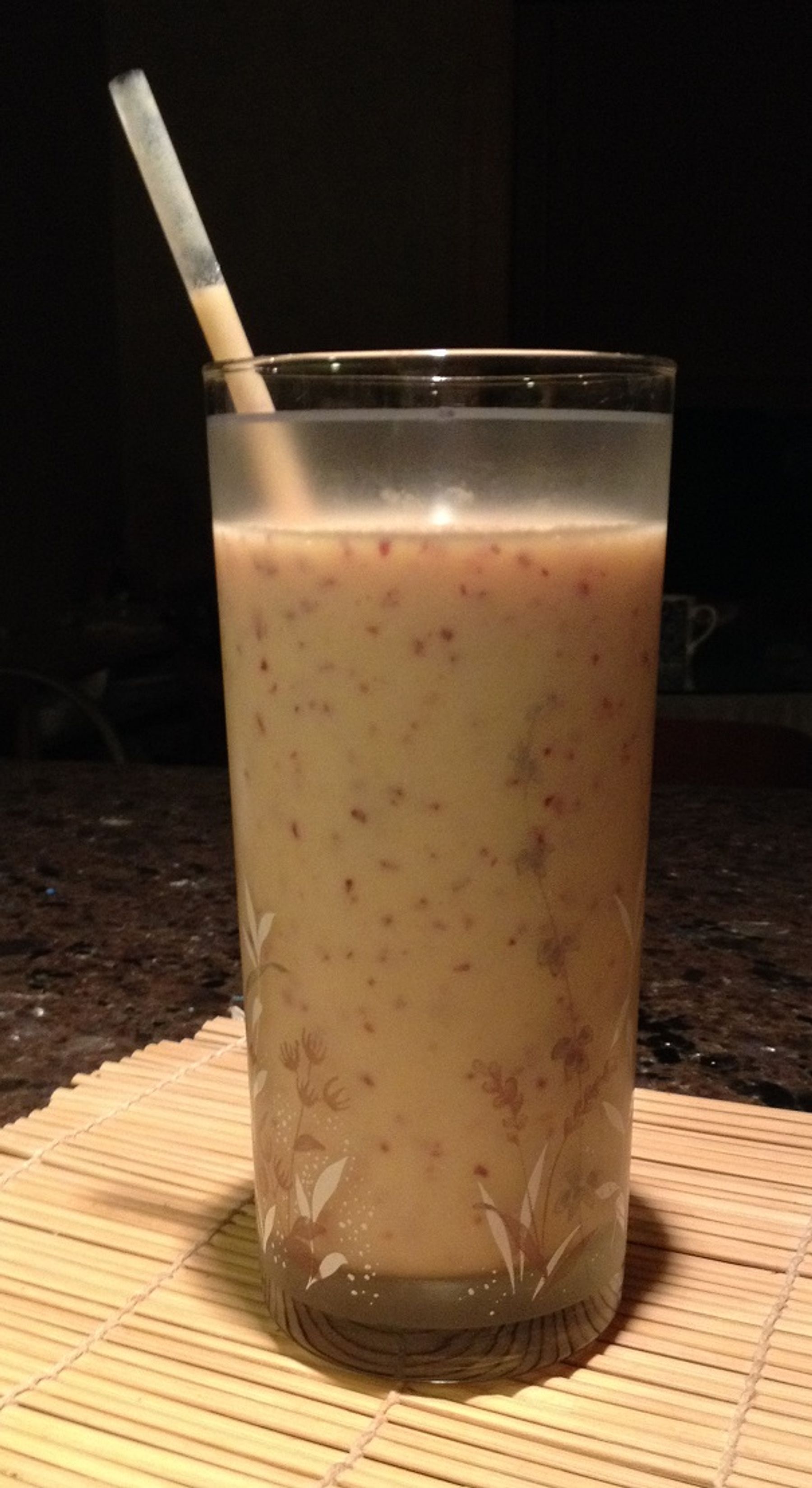 Put the peach pieces, honey, and a little milk into a blender. Blend until mixed.