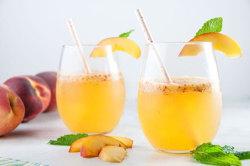 Sparkling peach wine spritzers make the perfect summer cocktail.