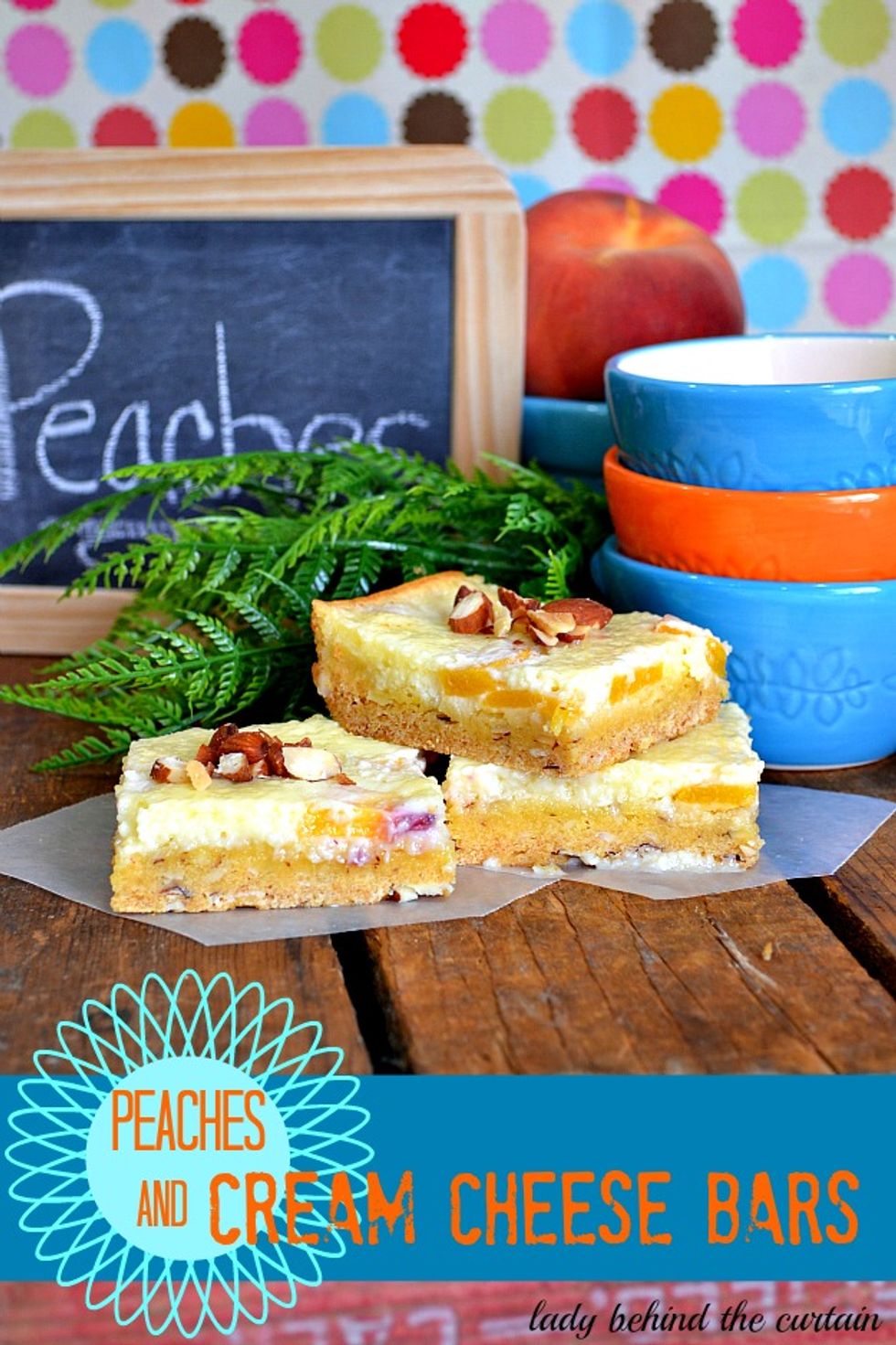 Celebrate a special day or event with these peaches and cream cheese bars. A cake batter crust topped with a custard like filling. These peaches and cream cheese bars are so easy to make with only a few ingredients. Serve this dessert at a brunch, bridal shower, baby shower or a summer gathering. Not peach season? Frozen peaches will work too!