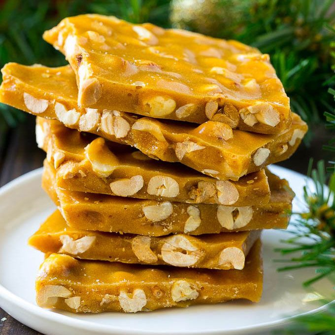 This recipe for homemade peanut brittle is a buttery, crispy confection loaded with roasted peanuts. Break the brittle into bite sized pieces and serve for a simple yet satisfying dessert, or package up your peanut candy for gift giving.