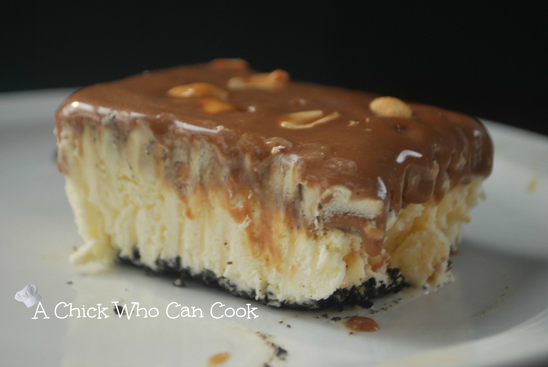 Crush Oreos in food processor and pat them down into the bottom of a 9x13 pan.