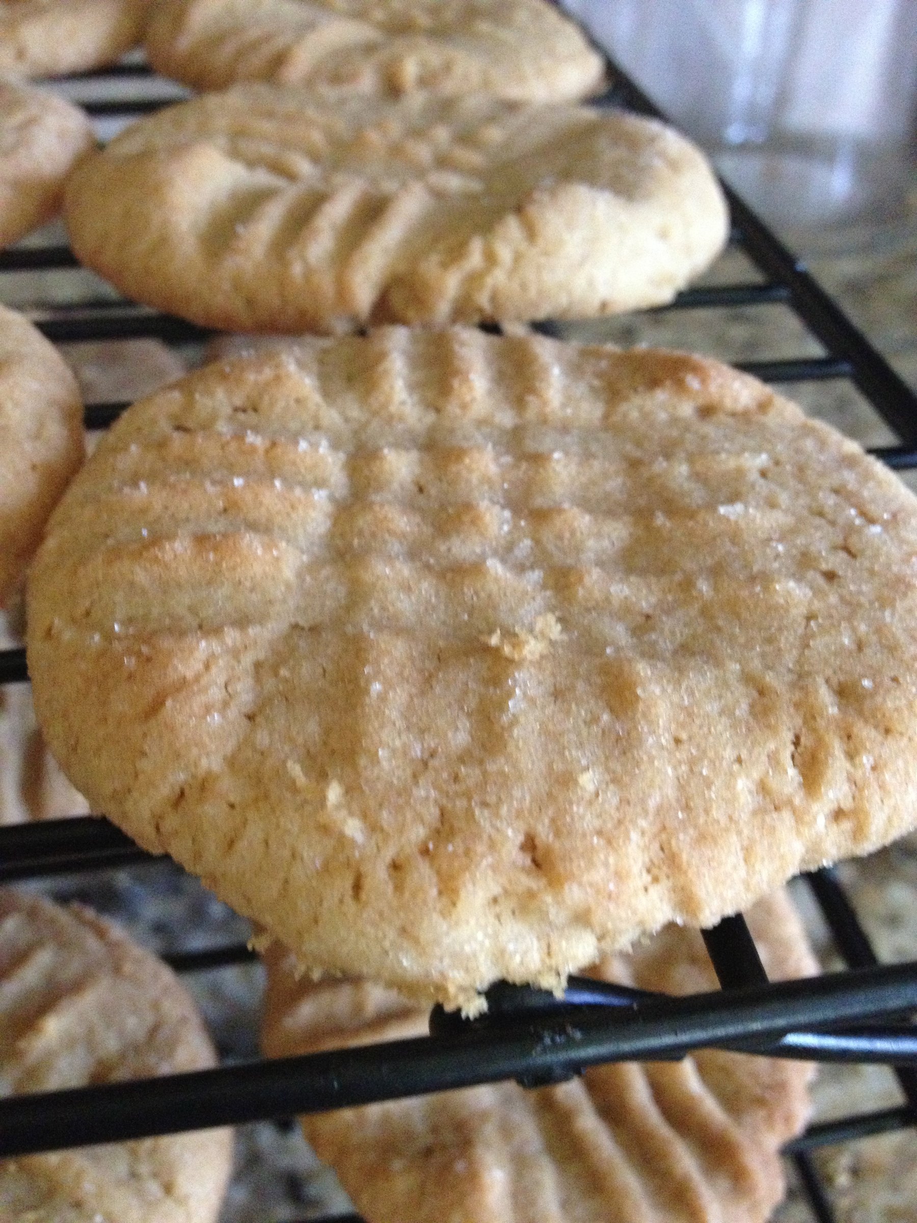 Beat butter and peanut butter until smooth. Add sugar. Add eggs one at a time until combined. Mix in the milk, vanilla and banana. In a separate bowl combine the flour, baking soda, baking powder and salt, then add to cookie mixture.