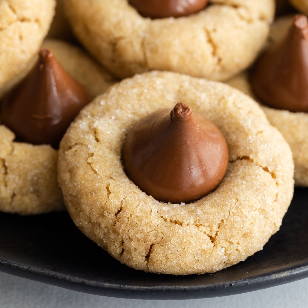 These tender peanut butter blossoms are an absolute favorite! They feature a melt-in-your-mouth peanut butter cookie rolled in sugar and topped with a chocolate kiss. This is one cookie you'll want to make over and over again!