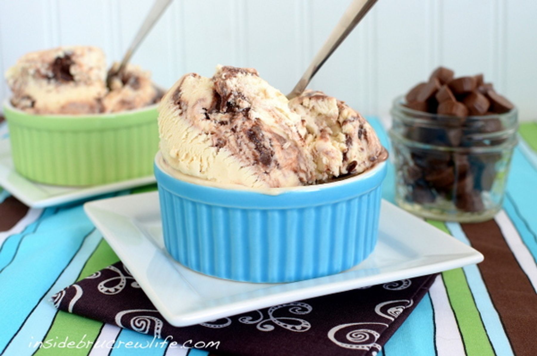 Peanut butter ice cream swirled with brownie batter and Reeses peanut butter cups...no machine needed.