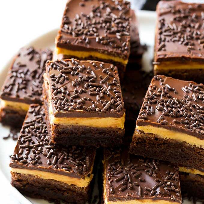 These peanut butter brownies are a rich chocolate base topped with peanut butter frosting and a layer of fudge. A dessert that looks fancy but is actually super easy to make!