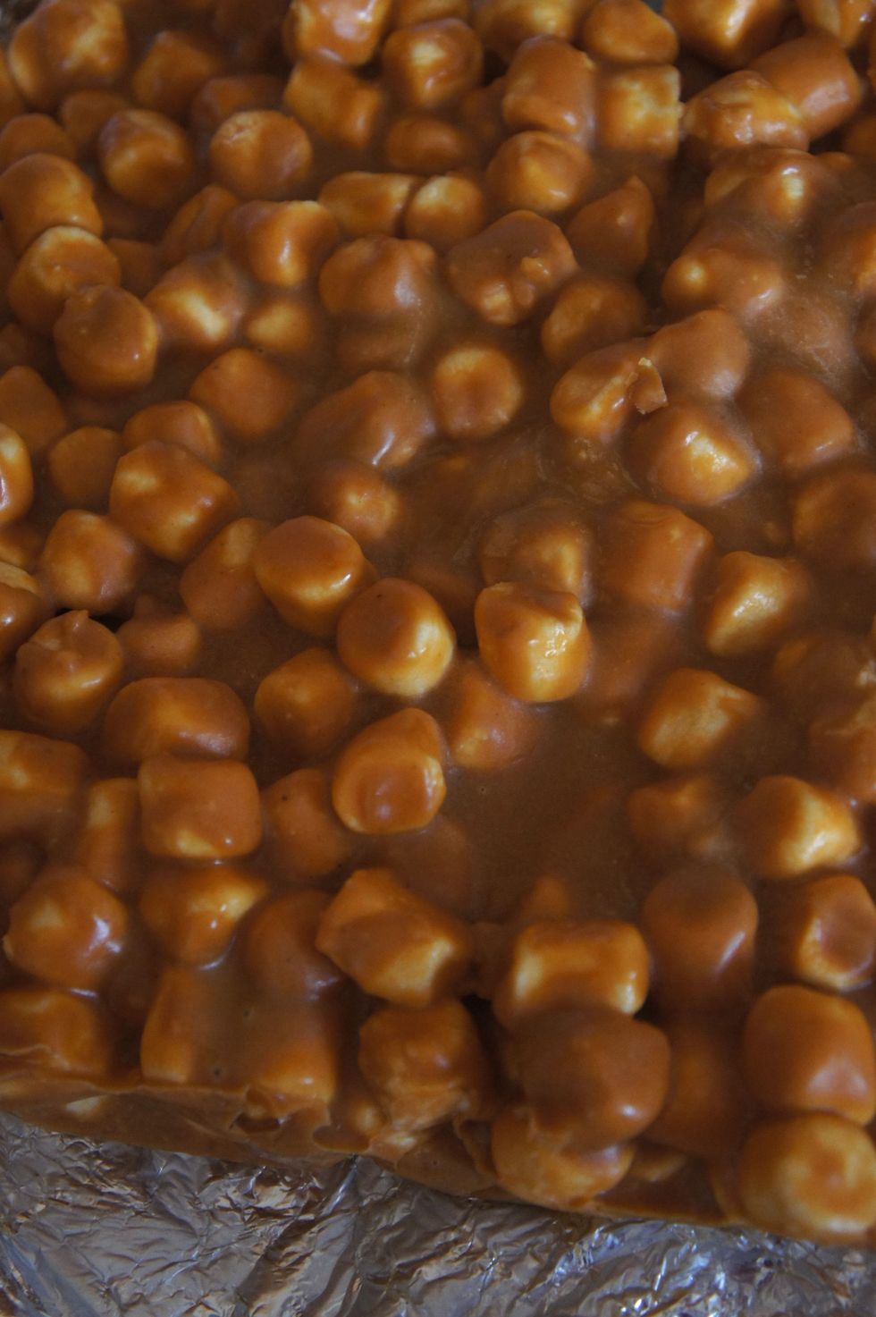 In a medium saucepan, over medium heat, melt the butterscotch chips, peanut butter...