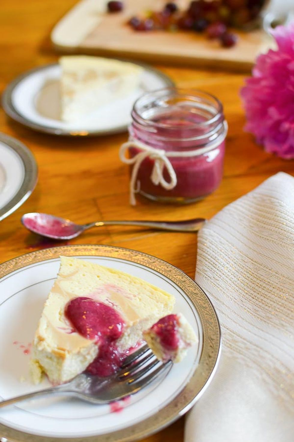 This whimsical dessert take peanut butter and jelly to one of America\\\'s favorite places, the cheesecake! Make this (HEALTHY!!) cheesecake today and feel like a kid again (A 21 Day Fix, guilt-free kid)!