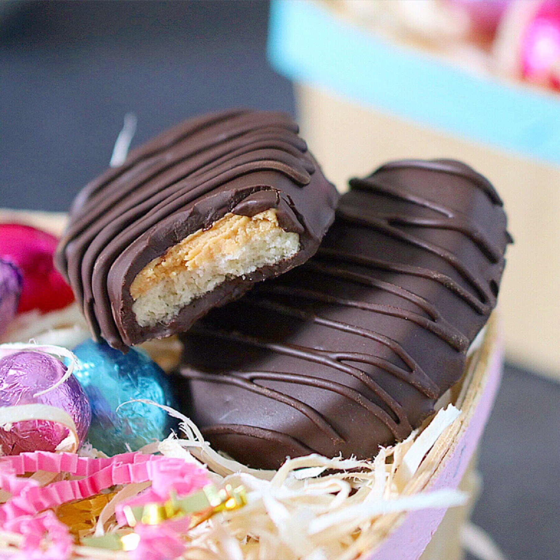 Incredibly delicious grain-free +vegan version of the Tagalong Cookie. Peanut butter and chocolate heaven.