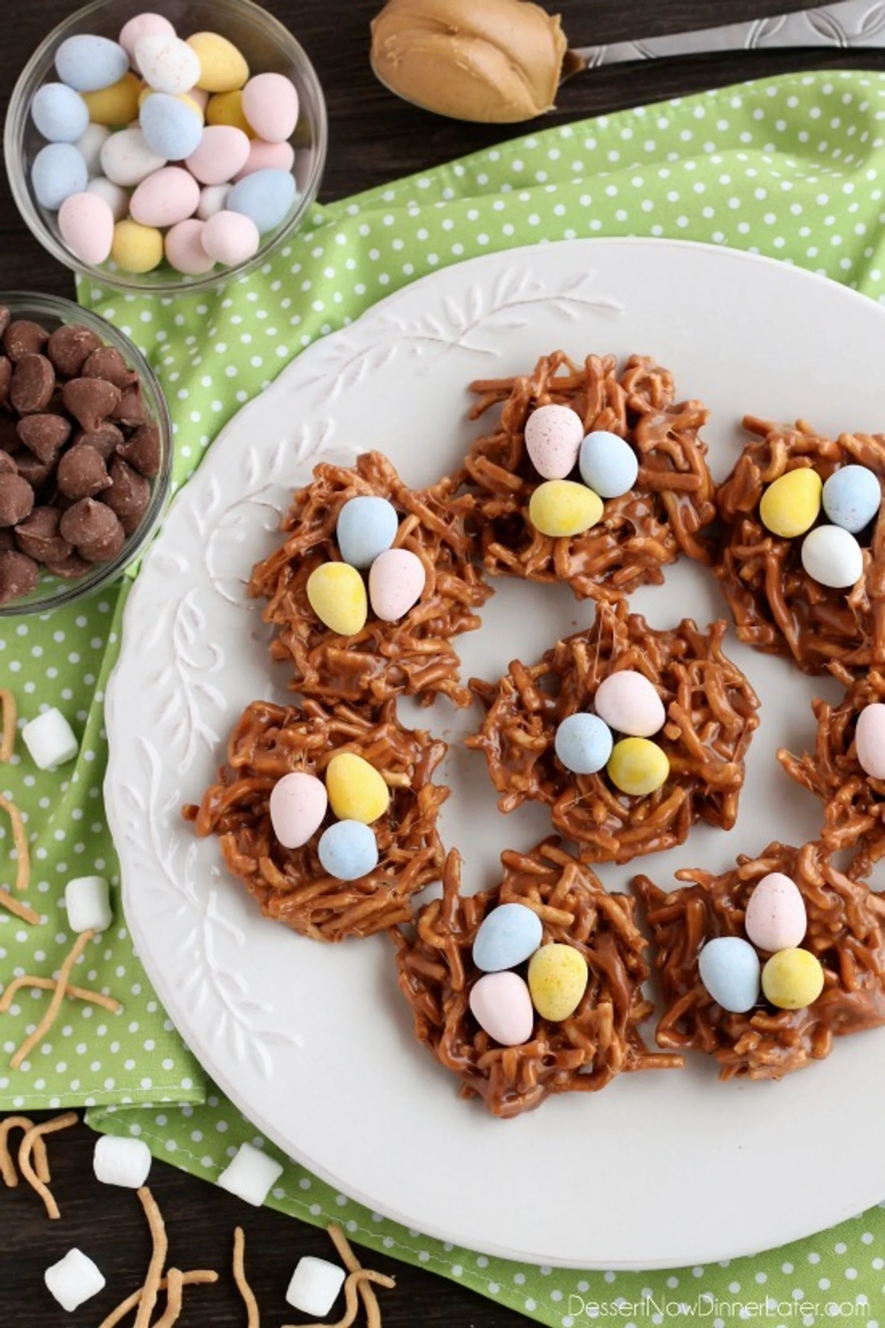 Peanut Butter Chocolate Nests are so quick to whip up, for a chewy, chocolatey, Easter treat!