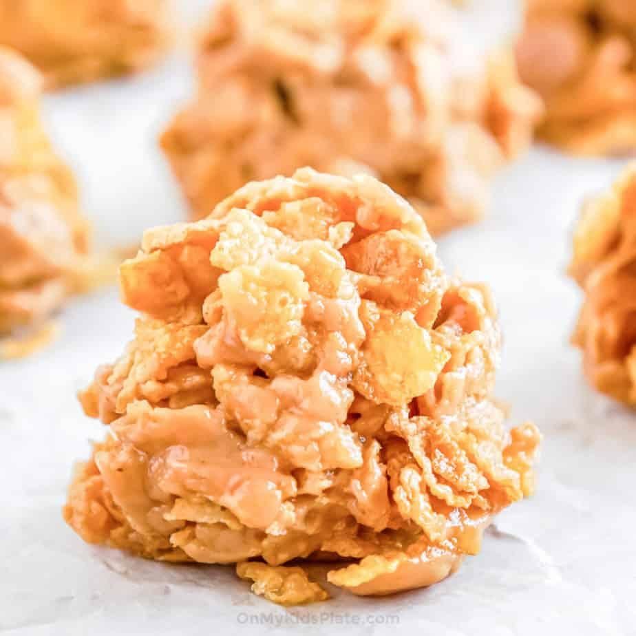 Peanut Butter Cornflake Cookies (No Bake!) OnMyKidsPlateJune 18, 2022 42 Chewy, sweet, salty and crunchy, this cornflake cookie recipe is a delicious treat! You only need five ingredients to make these gooey cookies, and it makes a super easy dessert.Find the full recipe on my site!See the full directions on my site