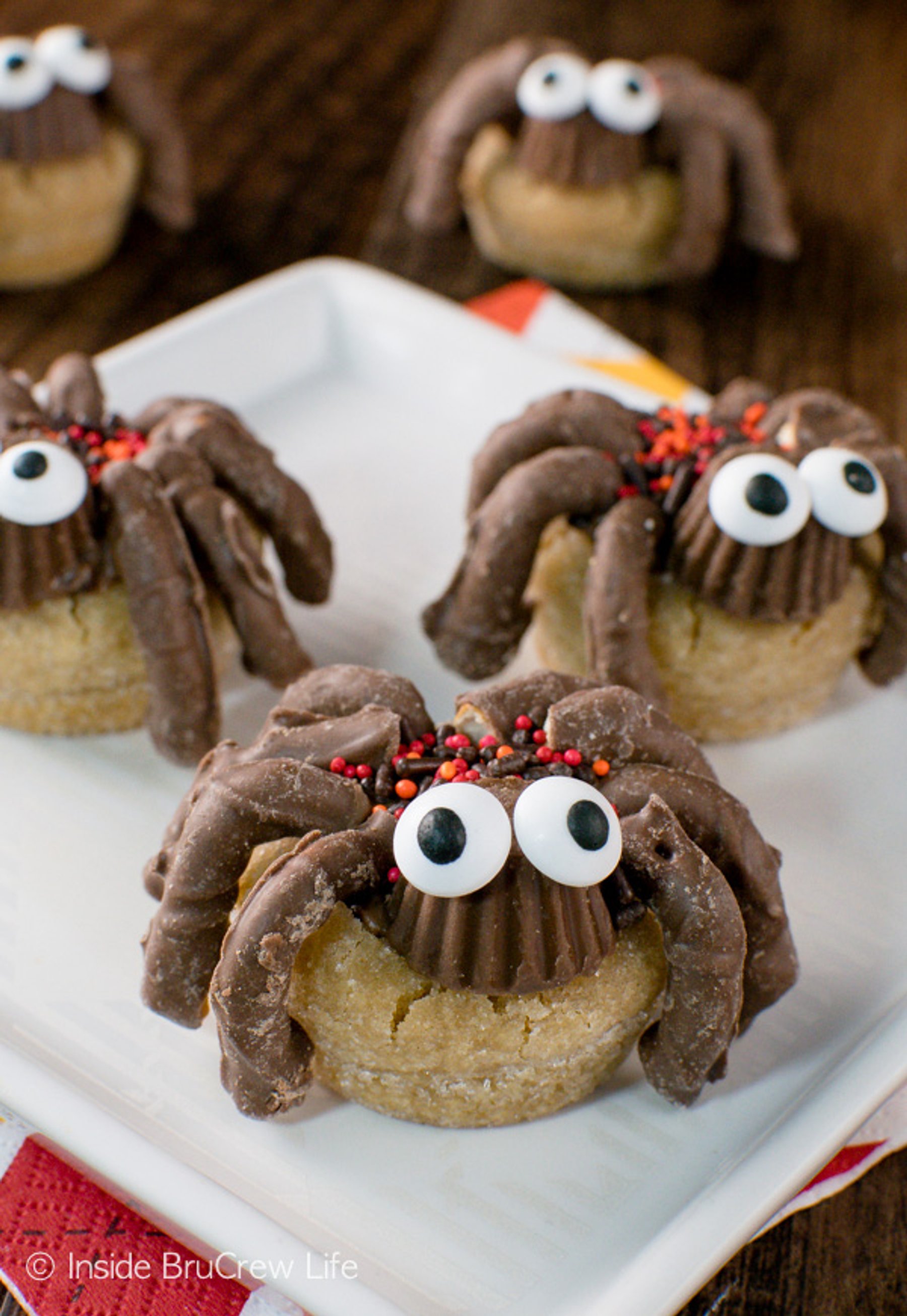 http://insidebrucrewlife.com/2016/10/peanut-butter-cup-spider-cookies/
