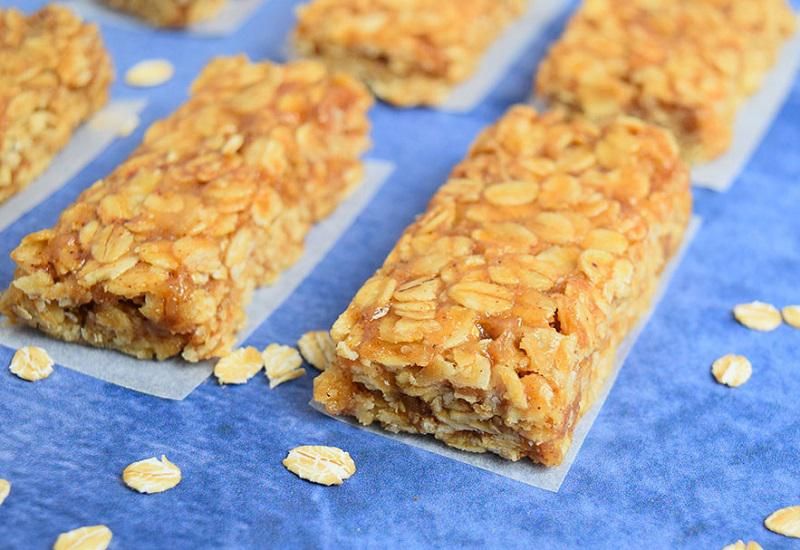 These 4-ingredient Peanut Butter Granola Bars are super easy to make, naturally contain a lot of protein, and will keep you full for at least 3 hours!