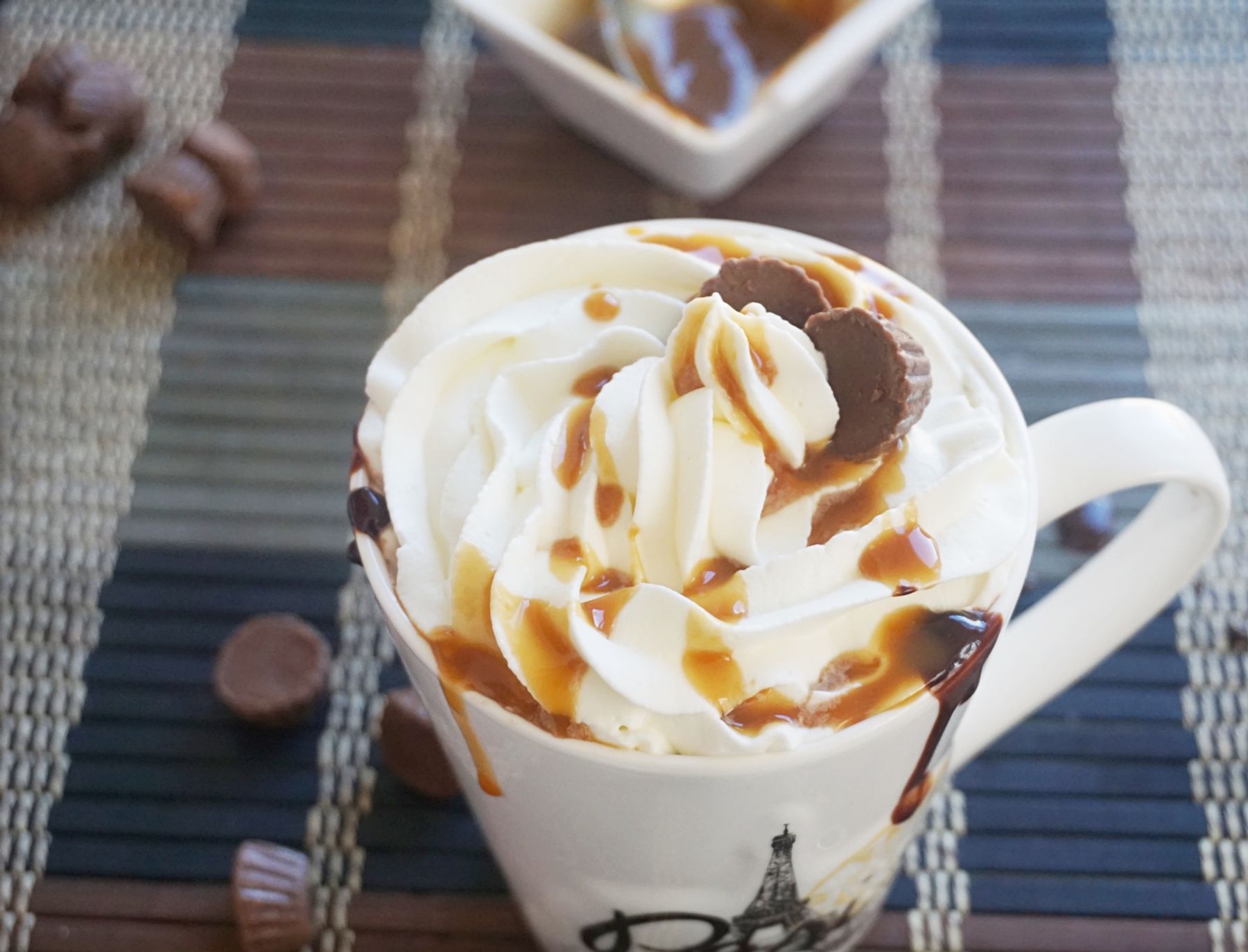Rich,luscious peanut butter hot chocolate,topped with smooth creamy whipped cream and drizzled with some extra peanut butter. Trust me,it’s not overwhelming. Is that rich enough? I hope you can’t get enough of it!