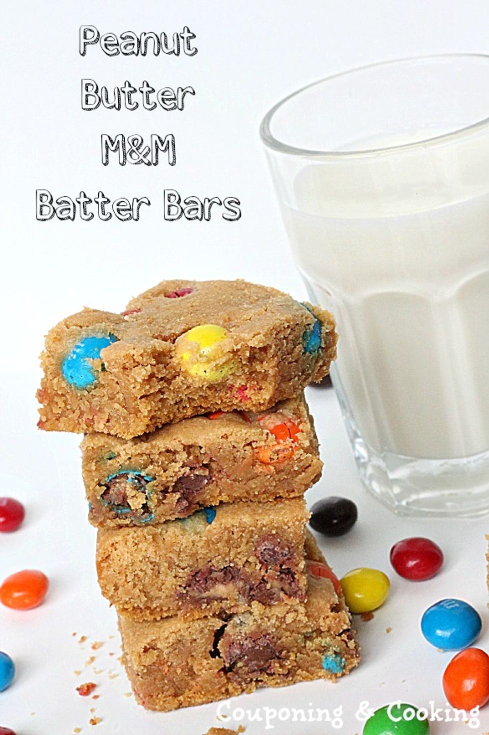 Peanut butter cake mix cookie batter mixed with peanut butter M&M's paired with a graham cracker crust. The perfect cookie bar!