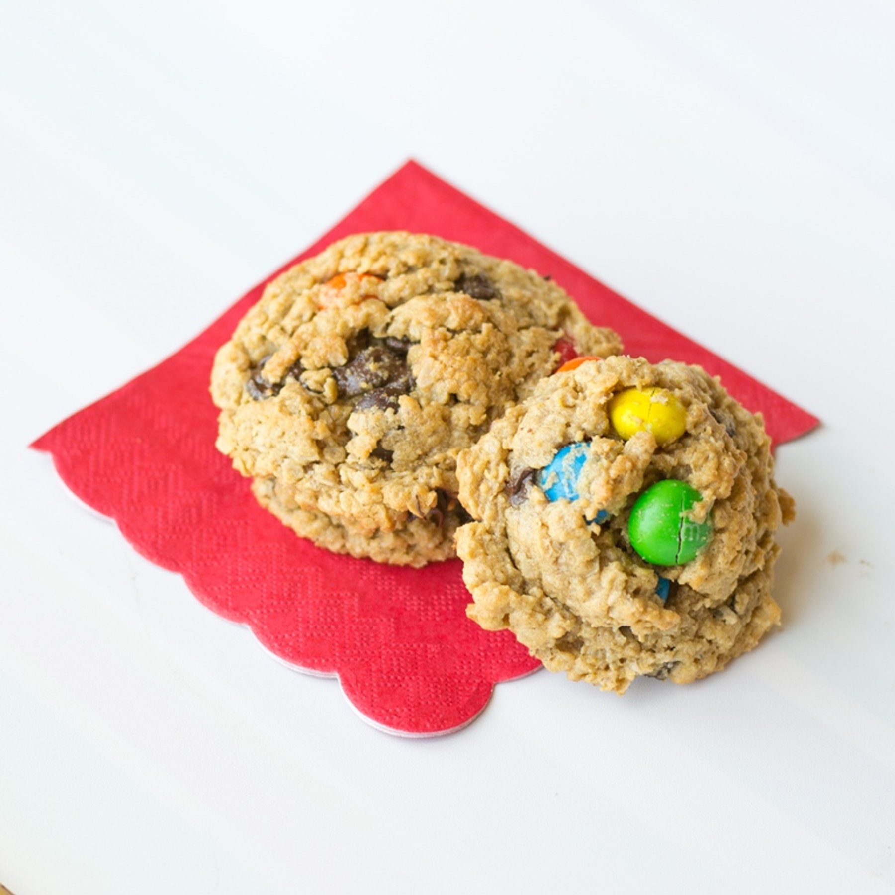 Peanut Butter M&M Monster Cookies are full of peanut butter, oatmeal, M&M's, chocolate chips and....no flour! That makes them healthy, right? :)