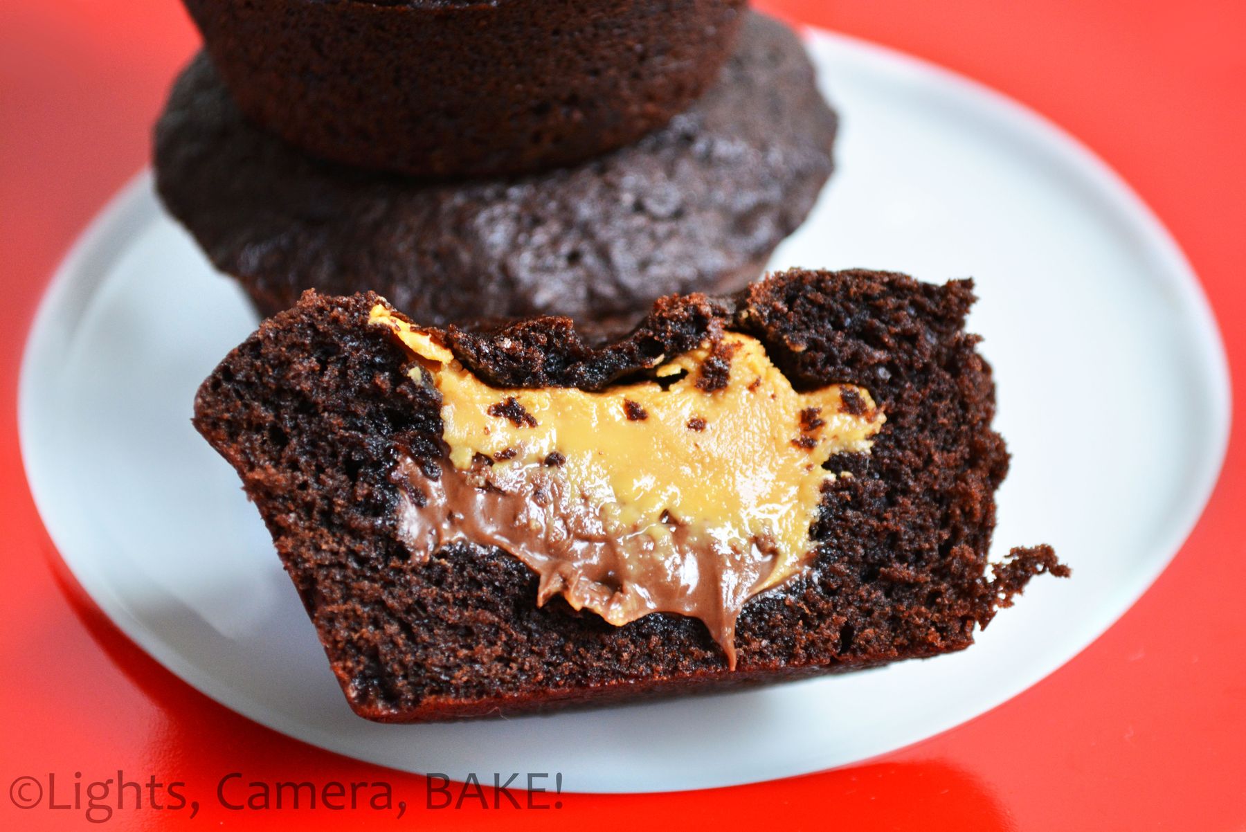 These Peanut Butter Nutella Chocolate Cookie Cups are cookies baked in a muffin tin to create a deep dish style cookie but to throw them right over the top they are stuffed with peanut butter AND Nutella.