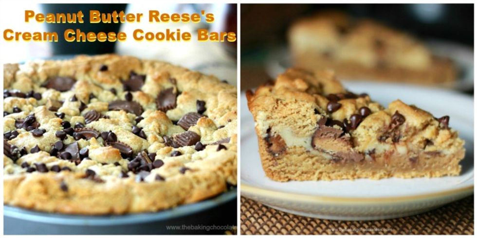 Would you turn luscious, rich peanut butter & Reese's cup cookie bars enter-twined with velvety cream cheese filling down?