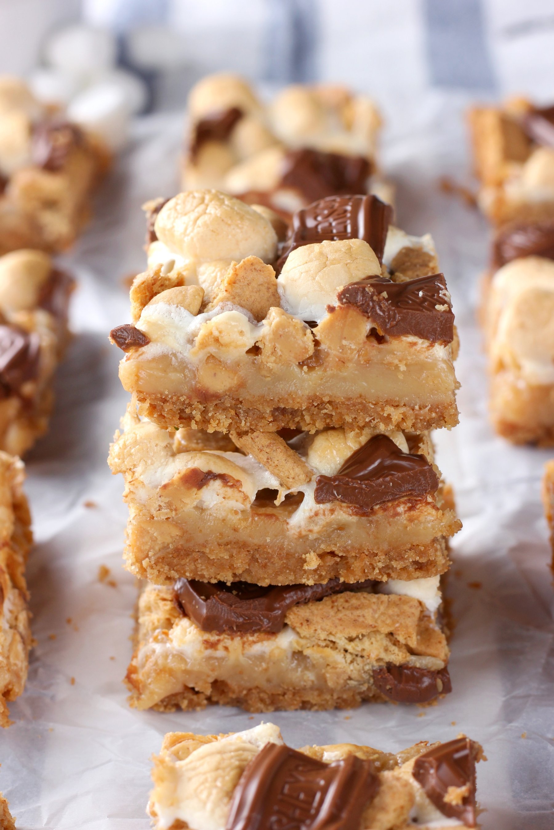 These Peanut Butter S’mores Seven Layer Bars have all of the flavor of a gooey s’more with the irresistible addition of peanut butter! Sweet and salty graham cracker crust and pieces, combined with toasted marshmallows, a layer of gooey peanut butter, and pockets of melty chocolate!
