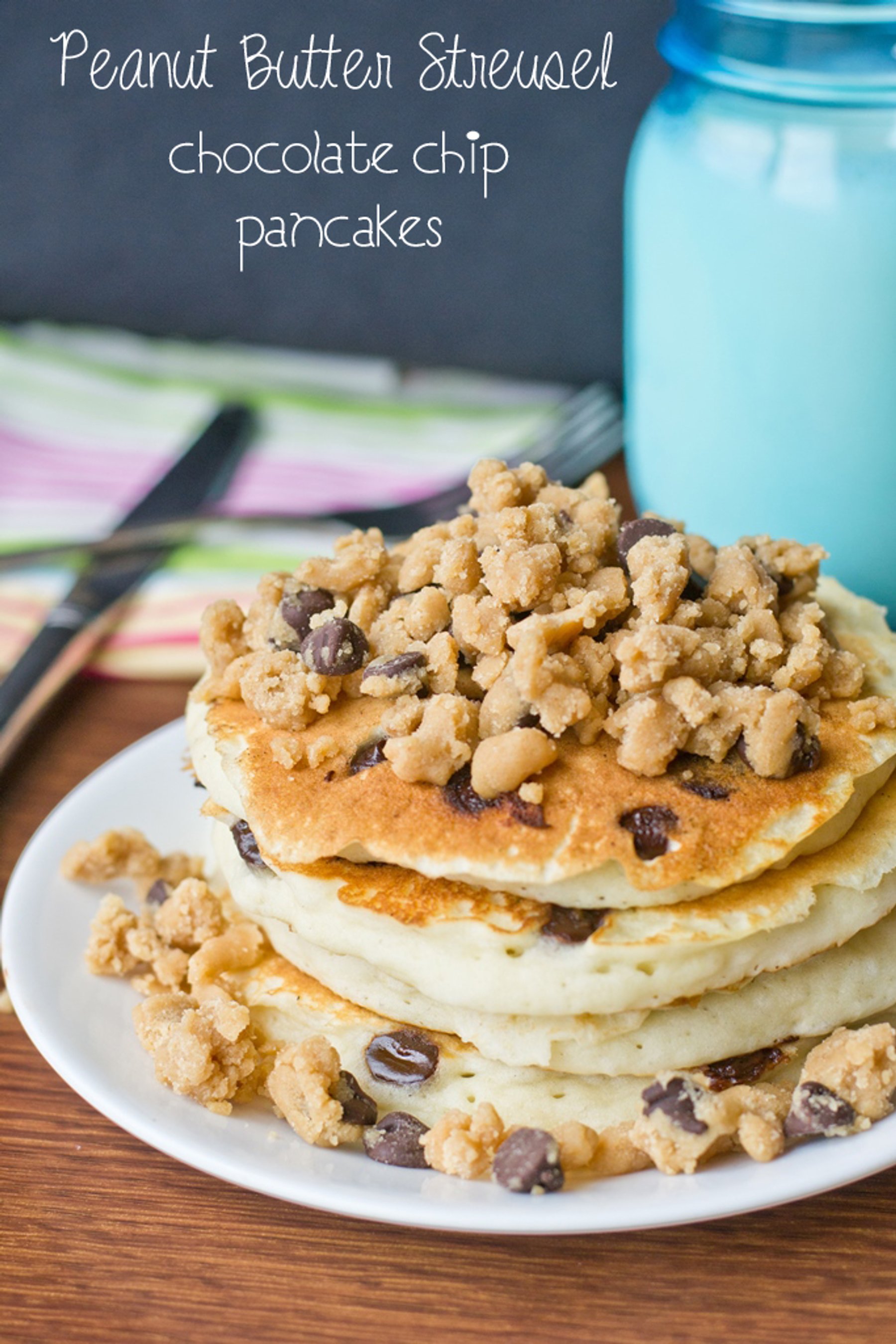 Peanut Butter Streusel Chocolate Chip Pancakes
