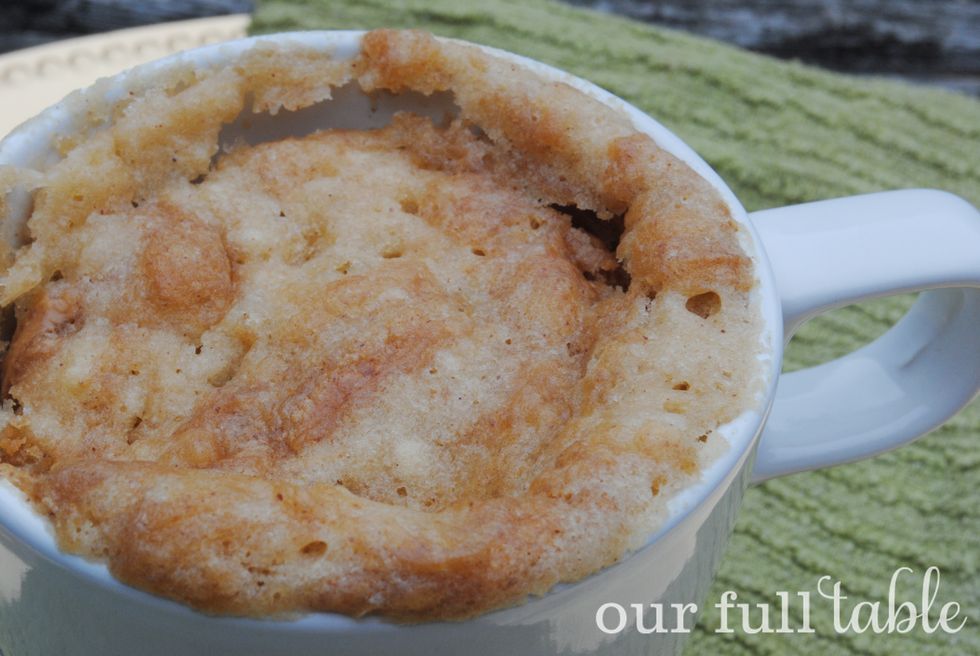 A fluffy, buttery mug cake swirled to perfection with peanut butter.