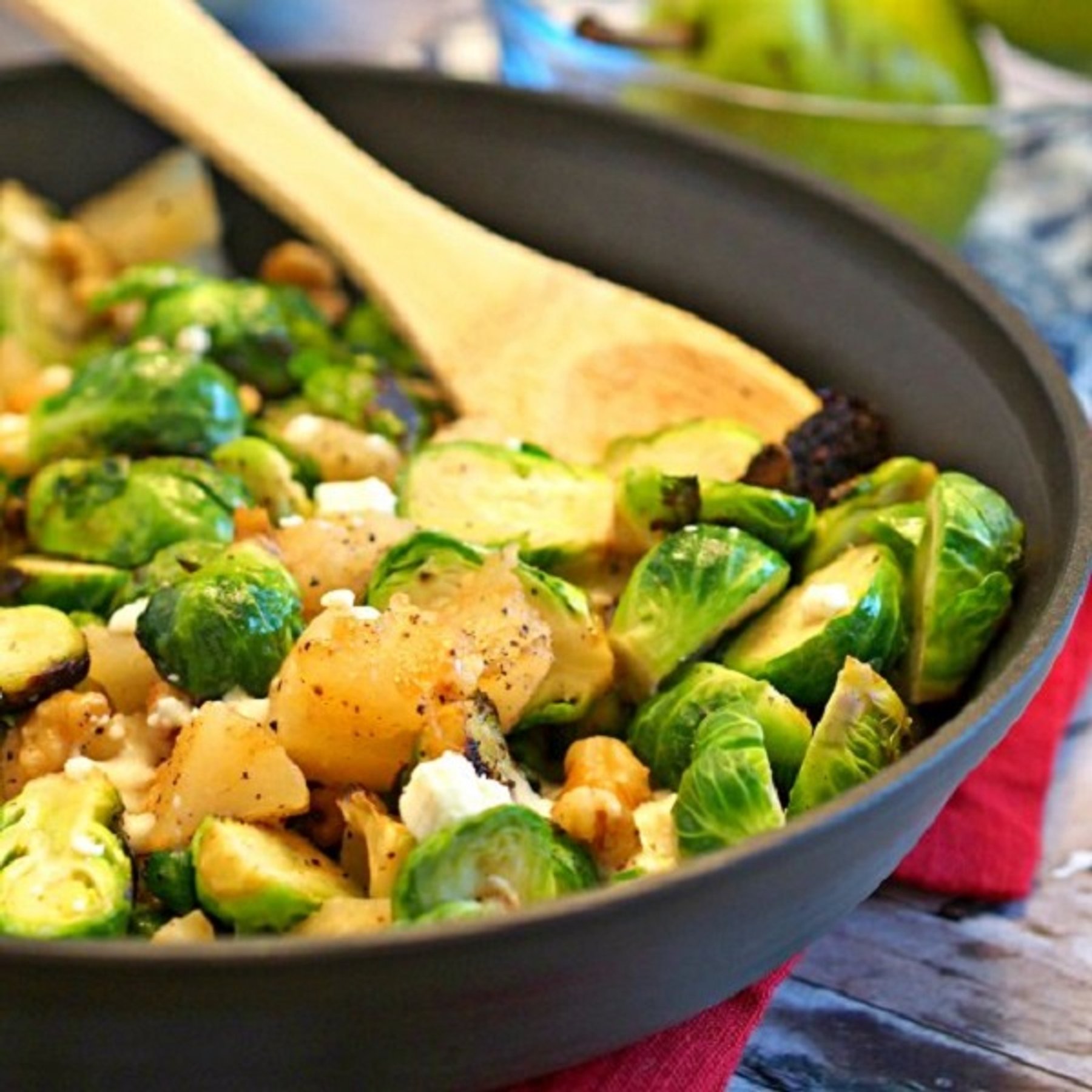 Pear and Blue Cheese Brussels Sprouts