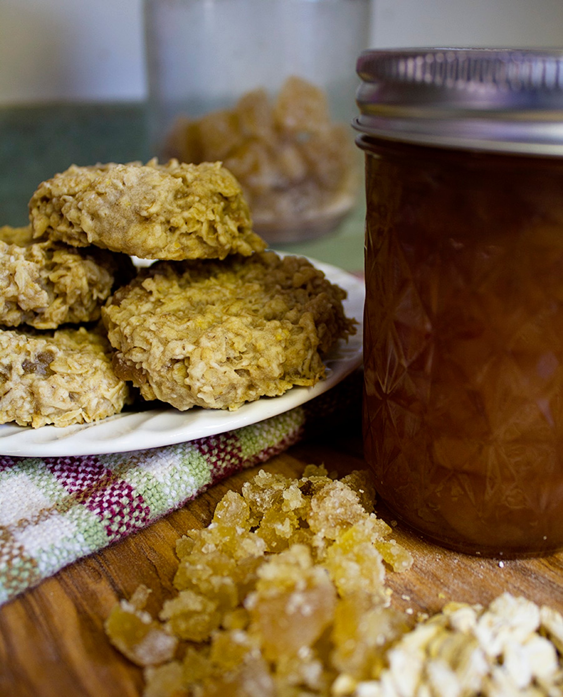 Sweetened with only 1/2 cup of your favorite jam - jammy oatcakes are a great breakfast or power snack. This version uses Pear Ginger Jam and candied ginger for a flavor packed treat!