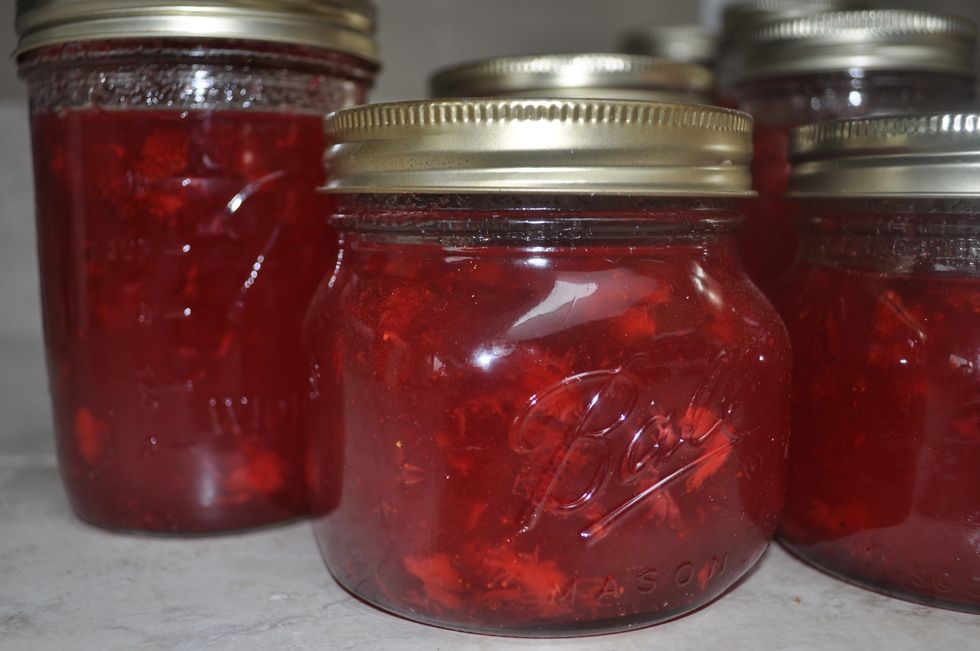 A super yummy jam that combines the flavors of pears and strawberries. It's a family favorite!