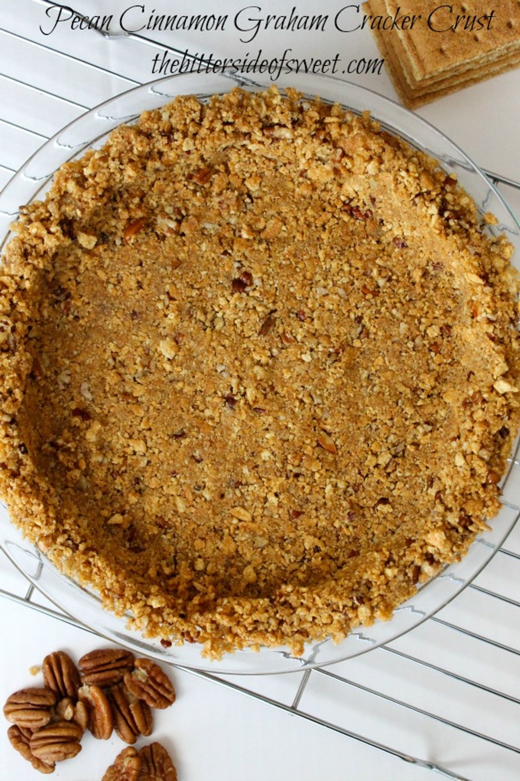 In a bowl add graham cracker crumbs, pecans and sugars....