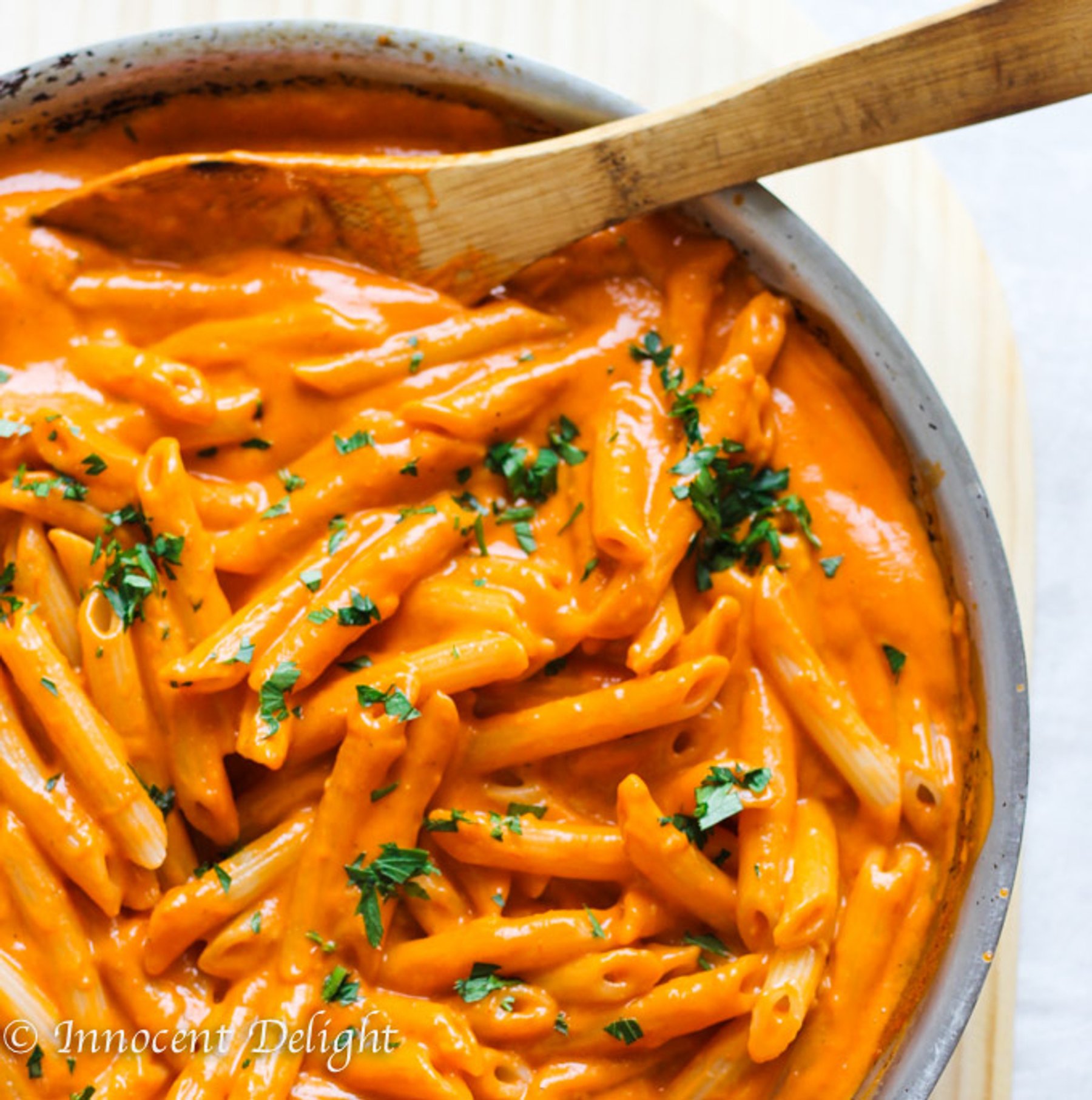 Penne Alla Vecchia Bettola - pasta recipe with Oven Roasted Tomato Sauce from the famous East Hampton's restaurant: Nick and Toni's, featured by Ina Garten on Food Network - Barefoot Contessa; with my little twist of using fresh tomatoes from my own garden.