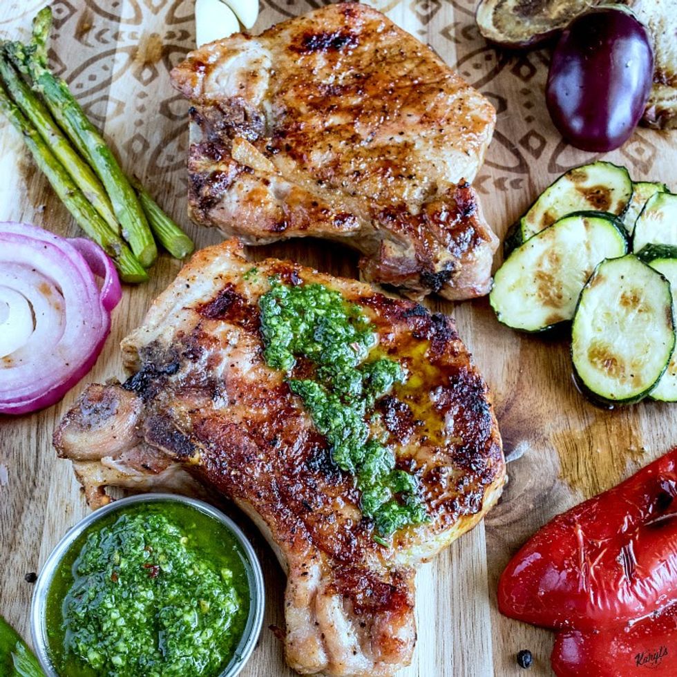 Peppercorn Garlic Pork Chops. Smeared in roasted garlic, seared in butter, and finished on the grill for incredible flavor